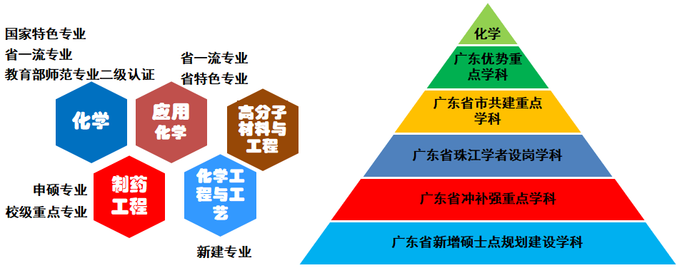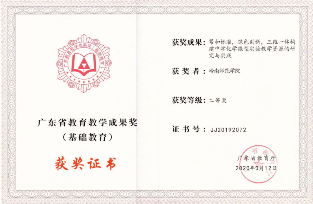 化学专业以教育部一流专业“双万计划”为引领,对照《中学教师专业标准(试行)》、《普通高等学校师范类专业认证实施办法(暂行)》等相关标准,持续改造课程与专业,完善人才培养方案;积极推动建立“讲授-读书-研讨-实训-调查”五位一体的人才培养机制和模式,实施U-G-S合作(高校-政府-中学)教研模式,培养了一批优秀的中学化学教师和教育工作者。化学是国家特色专业、广东省一流专业建设点,通过教育部师范类专业二级认证。紧扣标准,绿色创新,三维一体构建中学化学微型实验教学资源的研究与实践,获广东省教学成果二等奖。