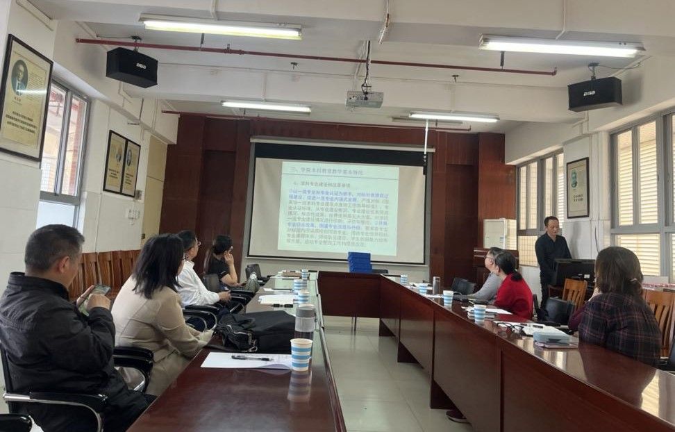 党委书记赵海波对专家组莅临学院指导工作表示热烈欢迎,他希望各位专家多提宝贵建议,帮助学院对标对本,找差距、补短板,努力实现“以评促建、以评促改、以评促管、以评促强”的目标。教学副院长周中流则围绕学院基本概况、评建工作开展情况、学院本科教育教学基本情况、学院本科教育教学成效与特色、存在问题和整改措施、学院未来发展规划等六个方面做了汇报,同时对目前学院各项教学档案材料的准备工作方面做了情况介绍。