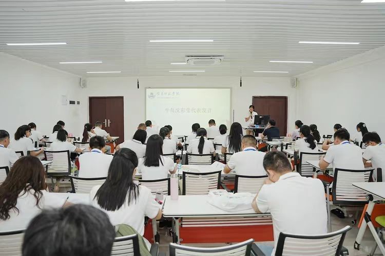 随后,来自湛江经济技术开发区觉民中学的沈彩莹老师作为学员代表发言。她首先代表全体51名参训教师,向精心筹备本次培训的岭南师范学院化学化工学院领导老师表达了诚挚的感谢。沈老师动情地表示,此次培训为大家提供了一个宝贵的学习平台和难得的充电机会,全体学员无不充满期待,并且呼吁大家以最饱满的热情和最认真的态度完成每一项学习任务。