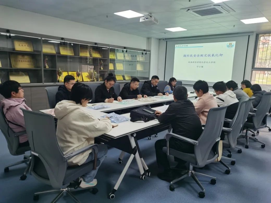 会上,宁小媚对2024年物理化学教研室工作作总结,充分肯定全体成员在教育教学、科学研究等方面取得的成果成绩,并对大家的辛勤努力表示感谢;同时对教研室当前工作存在的不足作分析,提出具体改进措施和建议。此外,会议还围绕“加强课程建设,提升教学质量”主题展开研讨,参会教师共同观摩物理化学实验建设视频,并就物理化学及实验课程建设、教学项目申报、教学成果奖培育等方面进行讨论交流、建言献策,为教研室发展提出了许多宝贵意见建议。
