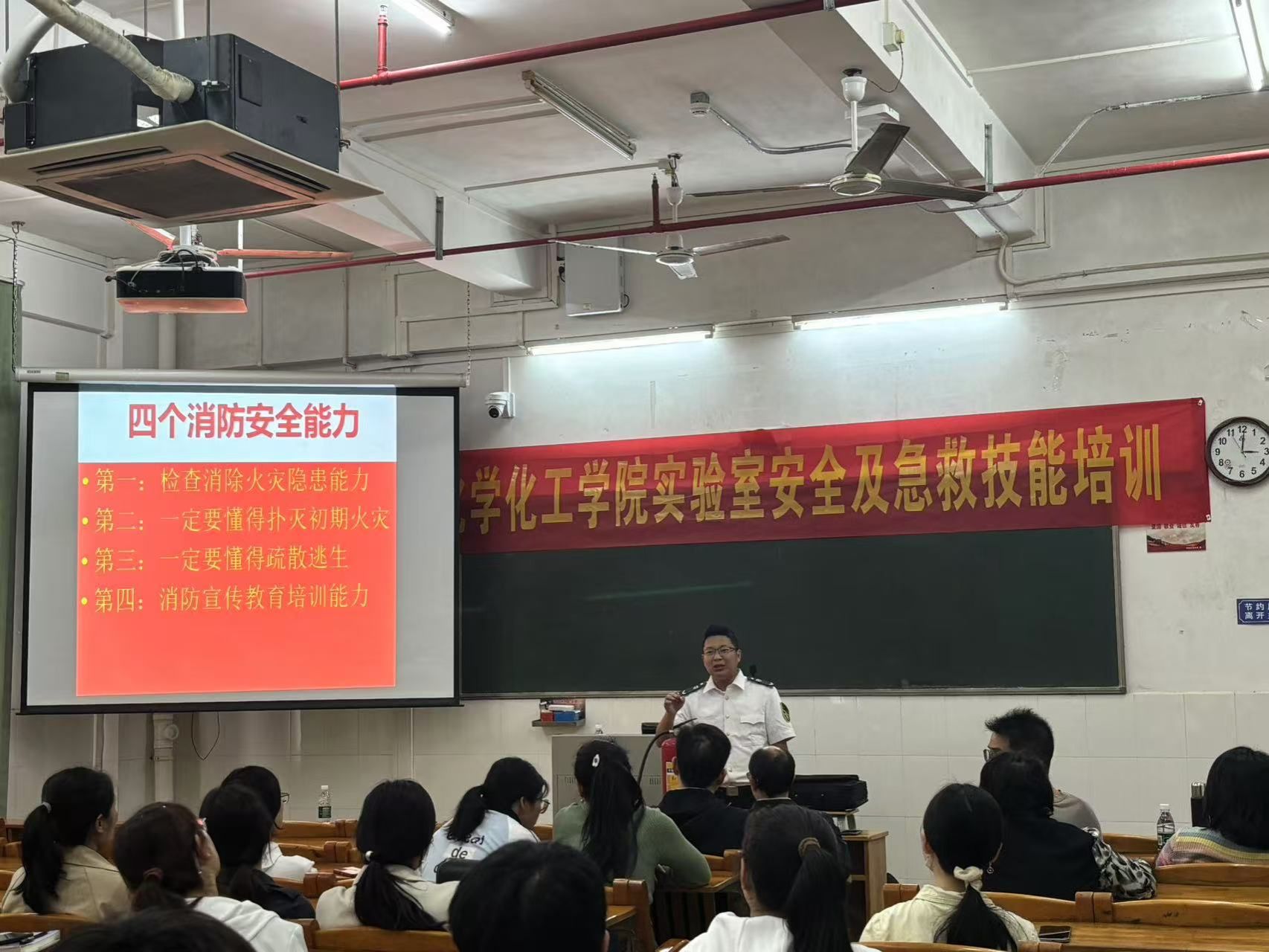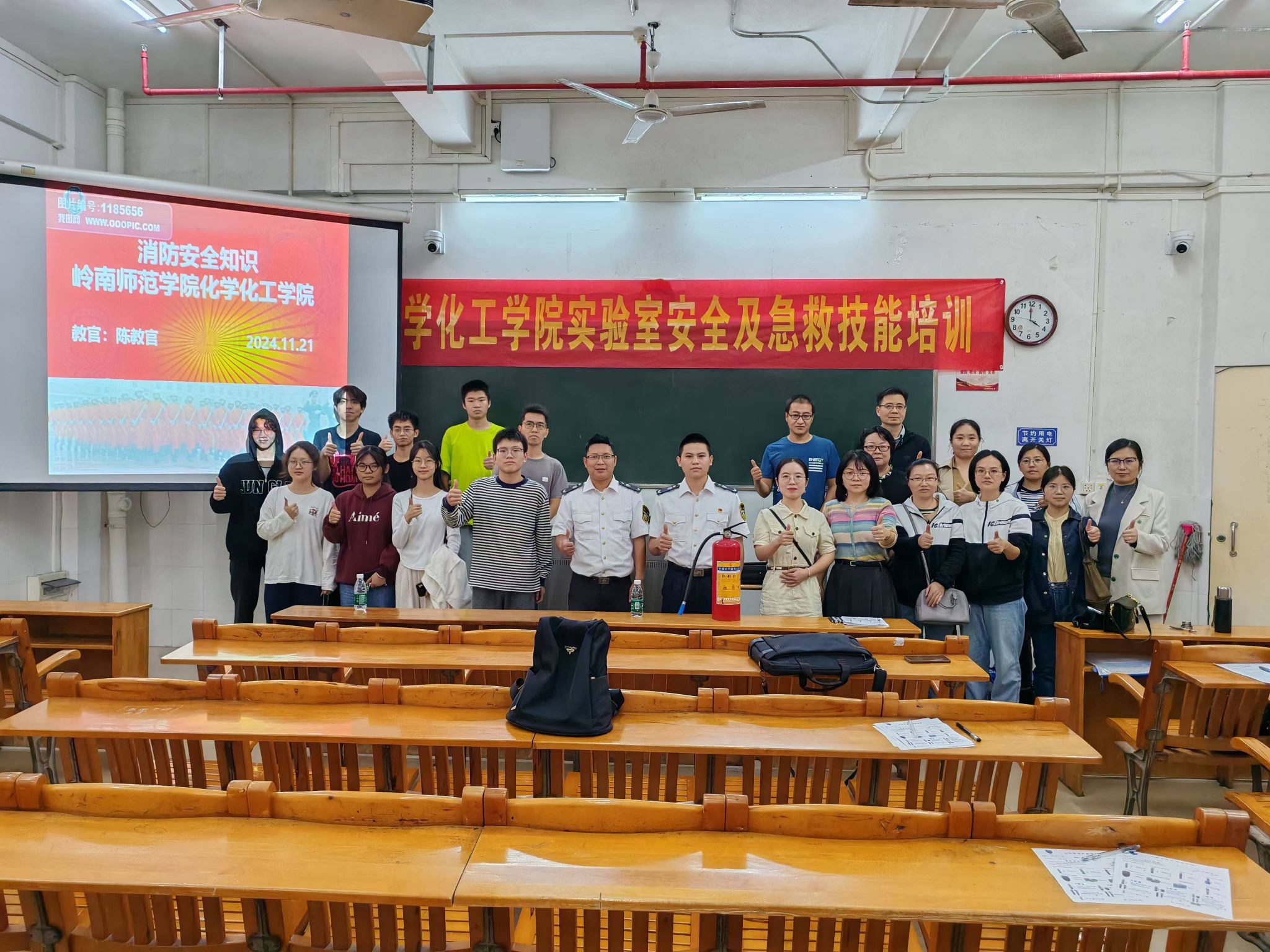11月21日,化学化工学院于燕雷楼C栋104室举行2024年实验室安全文化月活动——实验室安全及急救技能培训,由来自湛江市粤社安消防技术咨询有限公司的陈俊欣教官对师生进行培训。学院实验中心老师、部分专任教师及23级高分子材料与工程、化学工程与工艺、制药工程专业学生参加了培训。