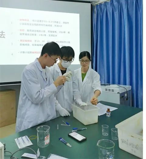 公开课环节,黄老师首先介绍了氯丙嗪对小鼠体温的影响实验中氯丙嗪的药理活性,特别介绍了氯丙嗪对体温的调节作用。详细讲解了氯丙嗪调节体温的原理以及实验方法。随后,介绍了药物的镇痛作用实验中热板法评价罗通定镇痛作用的实验方法,详细讲解了罗通定的药理作用以及智能热板仪的使用方法。学生们认真听讲,积极思考,对实验原理有了深刻理解。在掌握了实验原理后,学生们分组进行实验。他们按照实验步骤,从氯丙嗪对小鼠体温的影响实验到药物的镇痛作用实验,每一步都严谨细致。在分组给药环节,大家认真学习小鼠捉拿、腹腔和肌内注射方法。最后,黄老师对本次实验课程进行了总结,并对学生们的课堂表现给予了高度评价。她表示,通过本次实验课程,大家不仅掌握了氯丙嗪对小鼠体温的影响及特点,还学会了智能热板仪的使用方法,为今后的科学研究奠定了坚实基础。
