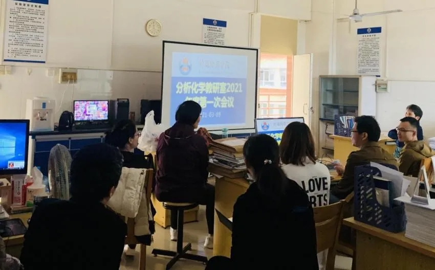 研讨会主要从三方面开展探讨:一是学习《岭南师范学院教研室工作管理办法》,针对教学文件、听课备课和成绩考核等重点问题进行研究。二是探讨分析化学课程标准存在问题,从中优化课程安排。三是分析教学科研项目申报及学生竞赛项目时间节点,并基于相关时间节点规划学期工作安排。