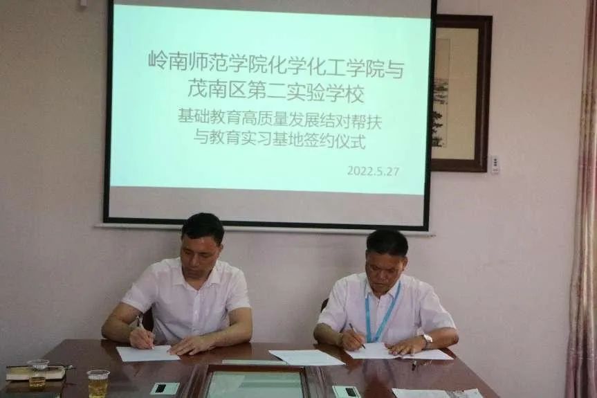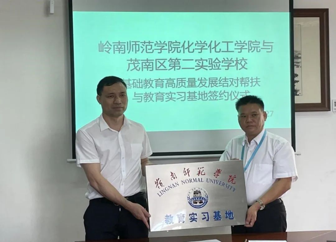 为深入贯彻省教育厅推进全口径全方位融入式帮扶粤西地区基础教育高质量发展工作的要求,落实《岭南师范学院赋能基础教育高质量发展行动方案》,5月27日,岭南师范学院化学化工学院赵海波书记、周小松院长、周中流副院长、晏蜻主任、谭高亮老师和彭兰贞老师等一行六人,分别到吴川市振文中学和茂名市茂南区第二实验学校进行调研,并与两校签订基础教育高质量发展结对帮扶协议和教育实习基地协议。