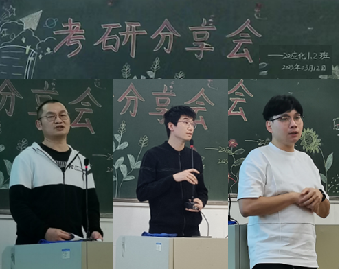 会上,首先是有机化学教研室主任惠永海以今年考研分数线为引,阐析近年大学生就业形势、人才引进和个人发展情况,指出考研不仅仅是提升个人知识水平,也是为以后工作发展创造更多可能;从报考学校、填报专业和选择导师及招生计划等维度方位给大家作介绍。随后,学院张永飞老师通过自己的考研经验侧重分享考研心态调整、压力释放、资料获取和学习节奏把控等。学院饶斯佳老师给大家讲述自己本科毕业工作后的心态变化,意识到学历在工作中的重要性,在家人的支持下选择继续深造,用亲身经历告诫同学们要认真规划人生未来。最后,化工系主任王磊发言指出考研之路艰苦而孤独,需要静下心来,坚定自己,持之以恒,相信付出就会有回报。