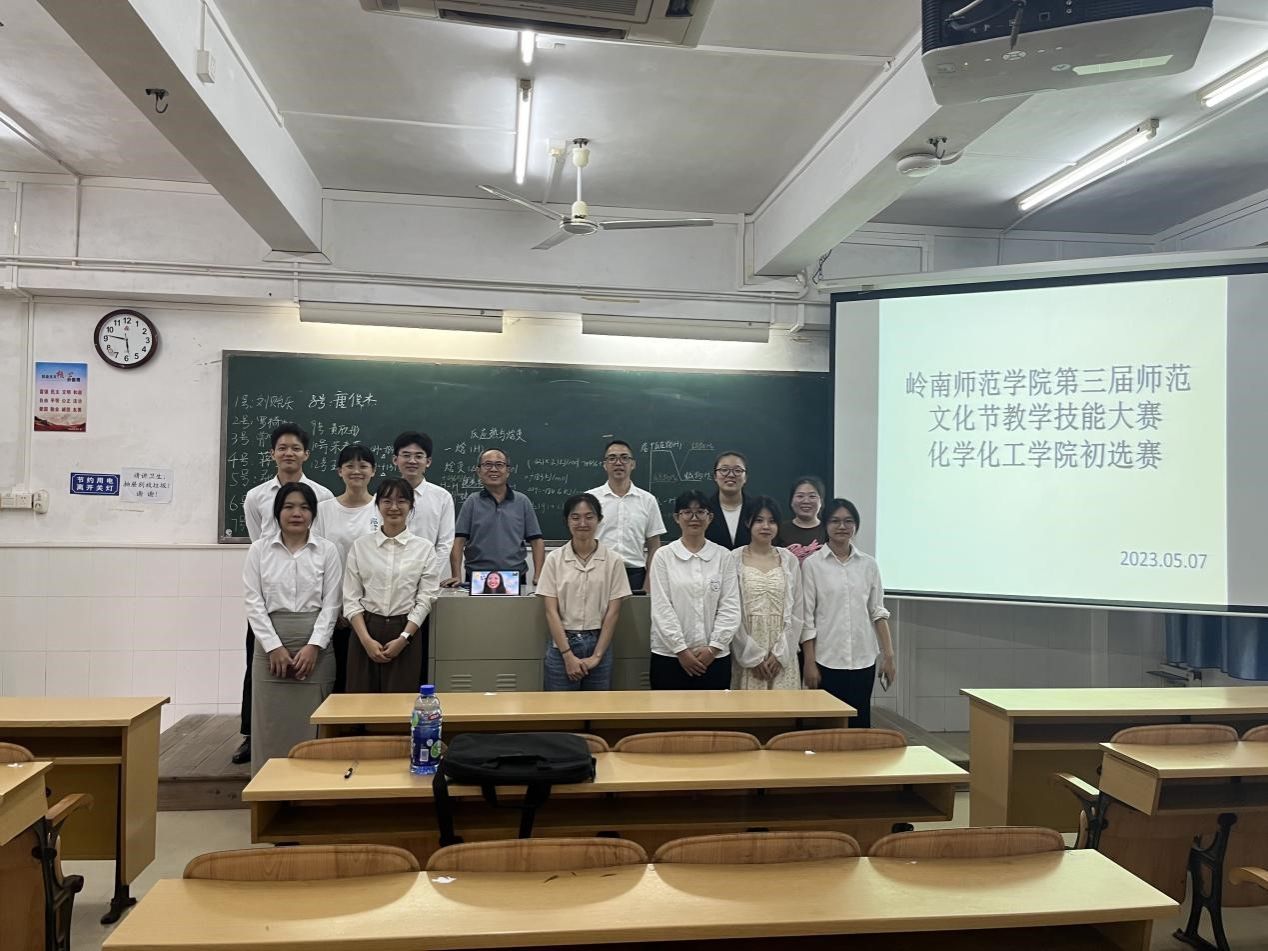为进一步提升我院学生教学技能水平,同时选拔优秀选手代表参加岭南师范学院第三届师范文化节之技能大赛,5月7日下午,化学化工学院在教四C-601室举办初选赛。学院刘一兵老师、谭高亮老师、彭兰贞老师担任此次大赛评委。