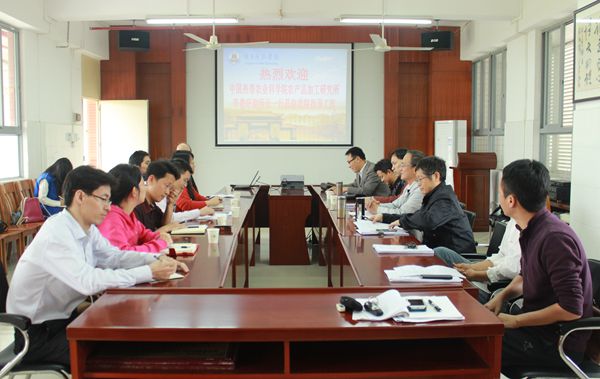 会议伊始,胡小军老师介绍双方交流的人员,对双方前期合作、交流的情况进行了介绍。朱国贤副院长对加工研究所领导莅临我院交流合作表示热烈欢迎,并向客人介绍了岭南师范学院的发展历史以及化学化工学院的办学历程、专业建设、人才培养、学科建设、办学质量等方面情况。朱副院长表示,希望加工所在学科建设,人才培养等方面给予支持,共同给学生提供一个更好的实践锻炼发展平台。李普旺副所长向参会老师介绍了加工所的概况和发展历史,他围绕加工所所取得成果、人员条件、研究科技项目、科技成就、发展方向和学术交流等方面展开了详细的讲述,希望通过了解促进双方更好的合作。会上,双方就在农产品加工、食品安全检测、高分子功能复合材料研究方面的科研合作进行了深入交流。