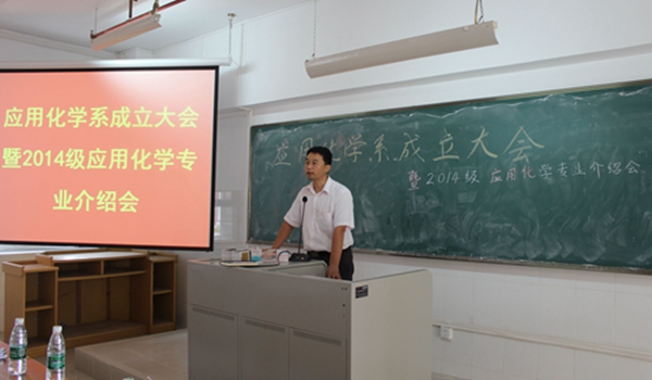 9月12日下午,化学化工学院在燕雷楼D栋401召开应用化学系成立暨2014级应用化学专业介绍会,出席本次会议的嘉宾有学院王胜院长、付继发书记、李梓副书记、苗碗根副院长,周小松、马琳、罗金、周国华、李程鹏等五位老师和全体2014级应用化学专业学生参加了会议。会议由苗碗根副院长主持。