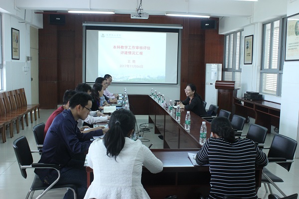2017年11月6日上午,教育部评估专家郝向英教授在工作人员的陪同下,风尘仆仆地到第四教学楼课堂听课。郝教授先后听了化学化工学院胡小军、王赟、韩冰三位老师上课,郝教授认真听课,详细记录,对我院三位老师组织教学过程给予充分肯定,同时对我院学生积极配合老师高质量完成教学任务表示赞许。下午,化学化工学院在学院会议室召开化学化工学院本科教学工作审核评估汇报会。教育部评估专家郝向英教授、化学化工学院领导班子、各系主任、全体辅导员参加了本次会议。会议由王胜院长主持。王胜院长首先对郝向英教授的到来表示热烈欢迎,对参会的领导、老师作了逐一介绍。