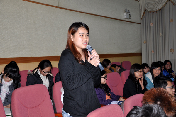 会后的自由问答环节把场上气氛推向高潮。针对同学们提出的问题,彭教授耐心、详细、专业地进行解答,其中关于同学们提出的设计纳米材料的发展前景问题,他指出纳米材料是科技前沿的问题,前景十分广阔,他鼓励有志于考研的同学们要抓住这个大好机会。