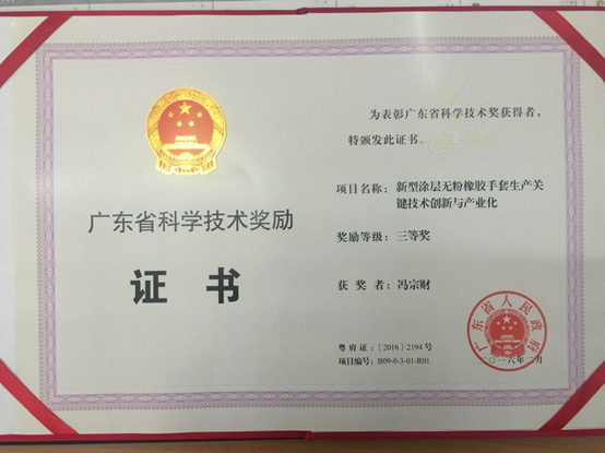 2月16日,广东省省委、省政府召开全省创新驱动发展大会,表彰2015年度广东省科学技术奖励项目,省委书记胡春华、省长朱小丹等领导出席了会议。我校冯宗财教授等老师的项目“新型涂层无粉橡胶手套生产关键技术创新与产业化”喜获三等奖,这是继2012年以来,我校再次获得省级科学技术奖。