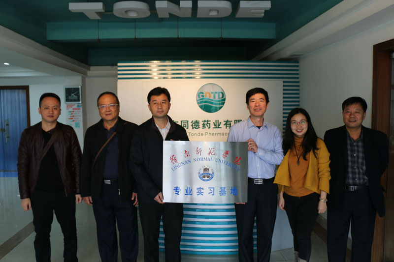 为进一步加强学生实习,促进学生就业,近日,化学化工学院与广东同德药业有限公司、广东一禾药业有限公司以及湛江市食品药品检验所三家企事业单位建立合作关系,共建实习基地。同德药业林文辉副总经理、一禾药业喻凯定总经理、市食品药品检验所陈少良副所长、岭南师范学院化学化工学院院长王胜教授以及相关人员参加了签约揭牌仪式。
