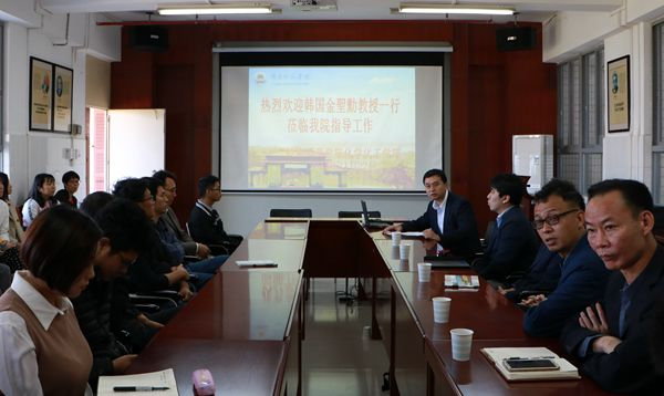 会议伊始,王胜院长致词,他对金圣勋教授和金宗贤教授的到来表示诚挚的欢迎,并对两位教授的学科工作及学术成就进行了简单介绍。随后金圣勋教授也表示,很高兴见到在座的各位,希望日后能拥有更多的交流合作机会。