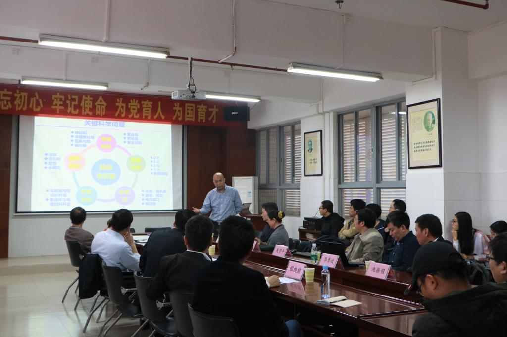 12月16日上午,受我校“珠江学者”讲座教授张山青邀请,国家获得者、江西师范大学副校长陈义旺教授,国家杰出青年项目获得者、南京工业大学能源科学与工程学院院长吴宇平教授,中山大学池振国教授、张艺教授,华南理工大学郭宝春教授,杭州师范大学李勇进教授一同作客学校雷阳大讲坛,莅临化学化工学院进行学术交流。化学化工学院领导班子成员及青年师生代表参加学术报告会。学术报告会由张山青教授主持。