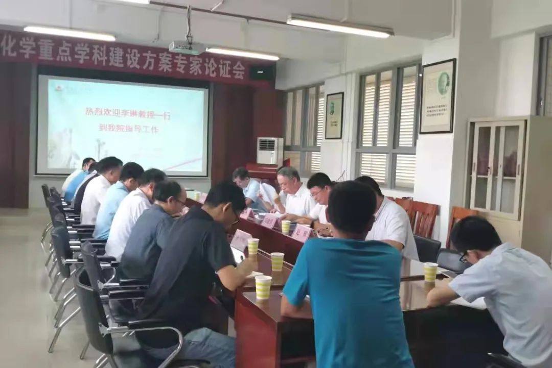 近日,化学化工学院于燕雷楼D栋305室举行化学“冲补强”重点学科建设方案专家论证会,旨在进一步推动化学重点学科发展,更好完善专业人才培养方案。会议邀请东莞理工学院(原)校长李琳教授、华南理工大学化学化工学院副院长胡建强教授、广东工业大学轻工化工学院院长王铁军教授、广东海洋大学化学与环境学院院长赵辉教授和广东石化学院化工学院院长欧阳新平教授作为论证专家。学院领导班子全体成员、各系主任和科研秘书出席会议。