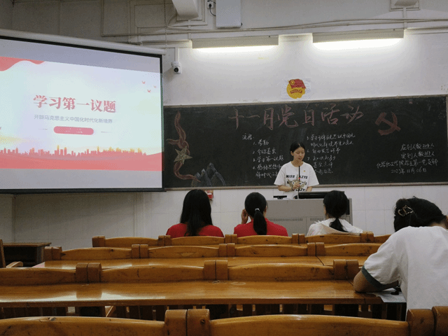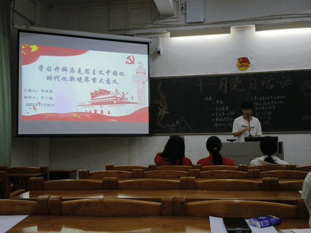 为进一步提升支部凝聚力,明确努力方向,2023年11月06日晚上,化学化工学院第一党支部在燕雷楼C栋105室召开主题为“ 开辟马克思主义中国化时代化新境界”的党日活动。化学化工学院学生第一党支部全体正式党员、预备党员、21级全体发展对象和积极分子、22级全体积极分子以及杨肖慧老师出席本次会议,其中20级全体发展对象和积极分子线上出席,本次会议由卢佳慧同志主持。