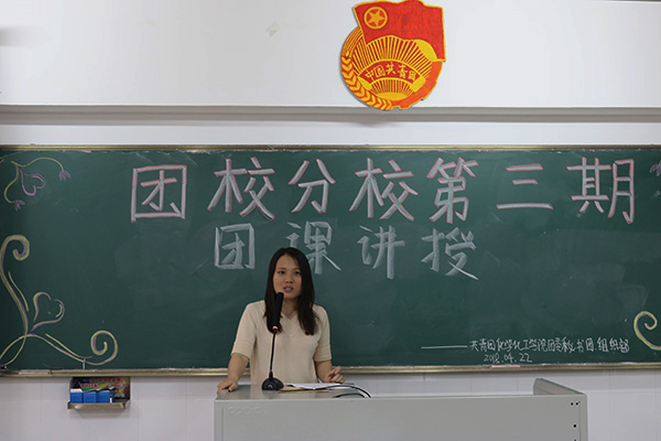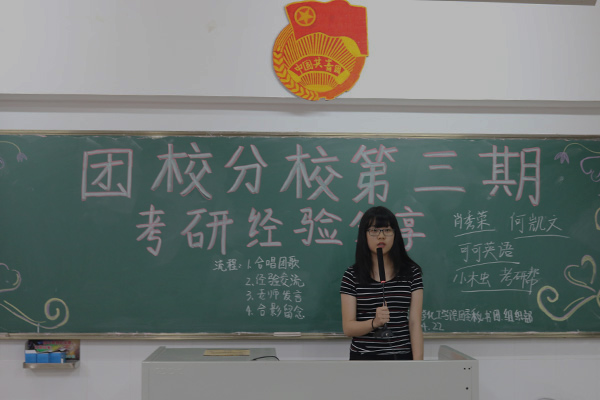 为进一步加强学习习近平总书记第十三届全国人民代表大会第一次会议广东代表团审议时重要讲话的精神,并让学生加深对考研资讯的了解,4月22日晚,化学化工学院于燕雷楼D栋401室开展业余团校培训,主题为“团课讲授暨考研经验分享”。陈艳君老师作团课讲授。14制药车逸豪、14化学赖晓琳作为成功考研的代表出席培训会。