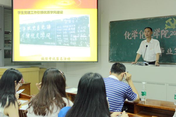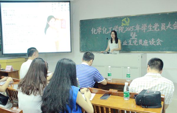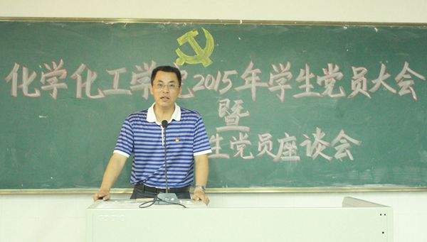 5月22日晚,化学化工学院党委在燕雷楼D栋102室举行了2015年学生党员大会暨毕业生党员座谈会,出席本次会议的有化学化工学院党委付继发书记、李梓副书记以及辅导员老师以及各学生支部党员。本次会议由万国权老师主持。
