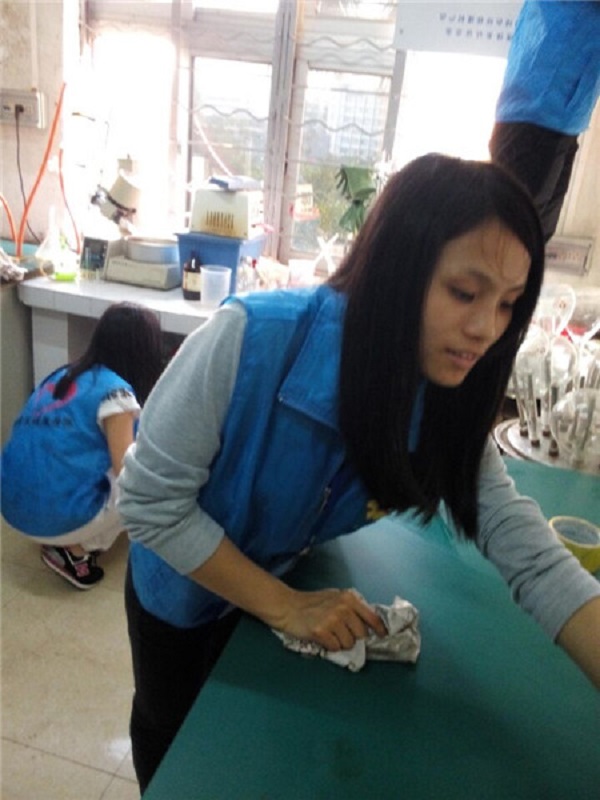 紧接着是擦拭积满灰尘的实验仪器和打扫地板,在实验室的一些死角,长年累月堆积了不少灰尘和碎屑,而这些垃圾的存在往往会污染实验的样品,影响实验结果。该支部的同志不怕脏不怕累,认真地死角的垃圾和灰尘清扫出来,将地板拖干净。