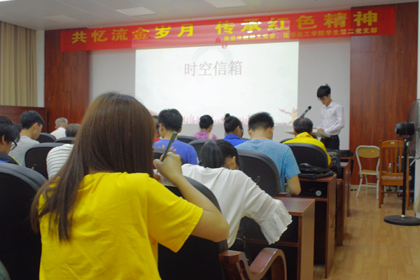 田欣民同志作为老党员代表讲述了他个人的蓝天梦,认为每个红军战士都有坚定的信念去克服一切的困难,希望每个青年人要从小立志,树立坚定的信念,要有艰苦奋斗精神和高尚的品德,把红军精神的接力棒一代一代地传承下去。接着,化学化工学院学生第二党支部的朱冰同志也分享了她的青春梦。她表示以后会更加坚定自己的梦想,以身作则,更加严格要求自己,用科学文化知识来巩固中国梦。为了进一步弘扬红色精神,他们组织了传苹果,唱红歌的小游戏,一首首经典的红歌萦绕在整个会议室。老党员温汉宏同志则朗诵了革命老党员冷少农给儿子的一封“红色”家书。他希望青年党员们从家书中汲取营养,不忘初心、继续前进,完成好这一代共产党员的使命。随后,青年党员廖家文同志也朗诵了老一辈革命家朱德给前妻的一封“红色”家书。她表示作为共产党人要继承烈士遗志,不忘入党初心、坚定理想信念、立足本职、扎实工作,为了实现中国梦贡献自己的力量。全体党员与积极分子在卡片上写下对老党员的感谢与祝福及在老党员邓明同志的带领下,重温入党宣誓。