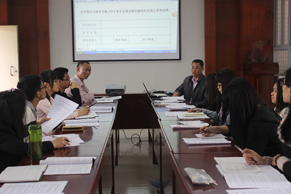 本次会议有四项议程:一、学生党建干部业务培训,由陈艳君老师主讲,她以《化学科学与技术学院学生党建工作指南》为根本,重点讲解了党员发展过程中应该注意的问题;二、“学生党建推进优质学风建设”书记项目启动,李梓副书记对该项目进行了解读,指出应从教育的核心价值观出发,营造化学院优良的学风氛围,以学习为主,坚持学生的学术科技战线,引领学生考研,完善学生党支部机制;三、学生主题组织生活立项活动通知,付继发书记宣读该通知,并建议同学们以“党建促学风”为主题,申报学生党建项目;四、付继发书记总结讲话,他对学生党员的管理教育方面的规定作了补充讲解,并回顾了2013年学院党委的相关工作,鼓励同学们创新党建工作思路,遇到问题敢于与老师沟通,学院党委会尽最大努力帮助学生党建干部解决困难。