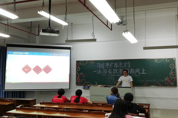 会议在一段激情澎湃的朗诵后正式开始。随后,在“广东之行”重要战略意义PPT讲解时,肖晓曼同志以PPT讲解的形式运用简明扼要的语言阐述港珠澳大桥建设之意义,这次讲解以“一国两制”为宗旨,强调广东作为全国改革开放先行区,应把中华优秀传统文化传播到五湖四海,同时应有“干字当先,实字为先,实干要想为,更要敢为,善为”为人处世准则。