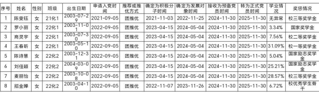 根据《岭南师范学院发展党员工作细则》规定,经本人提出申请,党组织培养考察,支委会审查研究,学院党委讨论同意,21化学1班陈雯钰等8名同志拟按期转为中共正式党员。现予以公示,征求党员、群众意见。