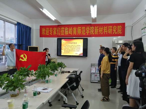 在精彩党课结束后,化学化工学院教职工第四和第六党支部支部全体党员还组织了全体党员以集体宣誓的方式,在陈跃瀚同志带领下,开展了一次重温入党誓词活动。在鲜红的党旗下,全体党员举起右手、握紧拳头,庄严宣誓。通过组织党员开展入党宣誓和重温入党誓词行动,让党员重温入党宣誓时的庄严承诺和坚定决心,在党旗下接受心灵的净化和洗礼,牢记共产党员的政治责任和历史使命,不忘初心,以更加饱满的热情投身各自工作。