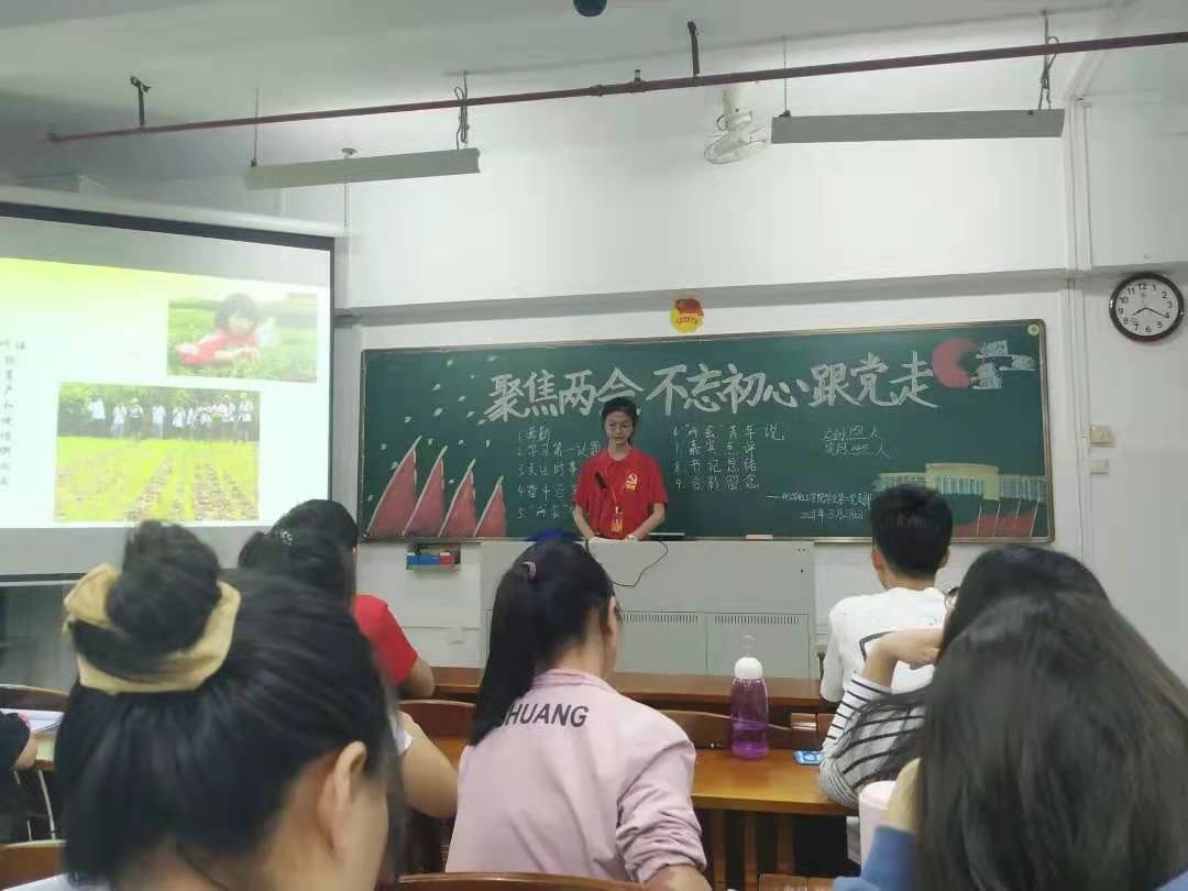 许诗咏同志通过PPT的形式就有关会议中的四个问题“人口老龄化”、“青年住房问题”、“乡村振兴”、“教育公平”向我们讲述了国家存在着“智能化技术进步,人性化服务不足”的问题,肩负着缓解青年人住房困难、做好巩固拓展脱贫攻坚同乡村振兴的有效衔接等重任。邱燕明同志则通过以视频播放的形式讲述“奋斗百年路,脱贫攻坚战”的进展,让我们了解到2020年全国所有的贫困县全部摘帽,每年的恩格尔系数不断降低,城镇化率、大学入学率、每个人医生数等都不断升高。