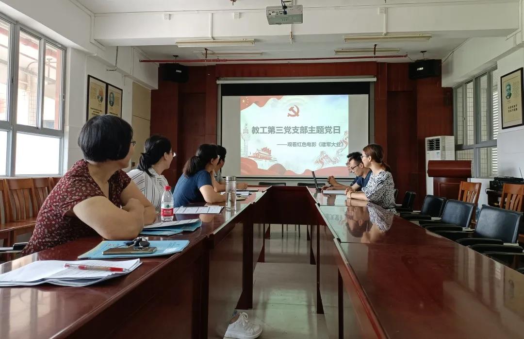 近日,化学化工学院教工第三党支部开展主题党日活动——集中观看红色经典电影《建军大业》,观后进行集中讨论,支部全体成员参加了活动。