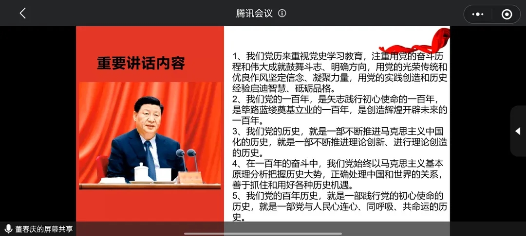 在党史学习教育专题组织生活会上,董春庆老师通过PPT讲解的形式,详细讲解了党史学习教育的重点和要求,并列举了许多例子。