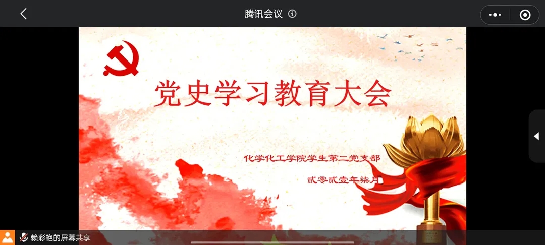 为加强党支部的建设,提高学习党史的意识,7月12日晚,化学化工学院学生第二党支部在腾讯会议召开党史学习教育大会。