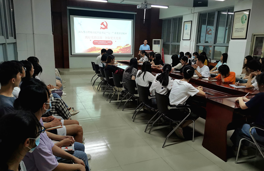 “坚持真理、坚守理想,践行初心、担当使命,不怕牺牲、英勇斗争,对党忠诚、不负人民,这32字的伟大建党精神,是中国共产党的精神之源”,赵海波带领同学们深入领会伟大建党精神的深刻内涵和时代价值。伟大建党精神是对建党实践的科学总结,是对百年党的建设在精神层面的高度概括,是各种革命精神的总源头。他强调,学习“七一”重要讲话精神,是当前理论武装工作的重中之重,也是党史学习教育的核心内容,作为青年大学生,是青年中的优秀代表,必须学深一层,当好“头雁”。