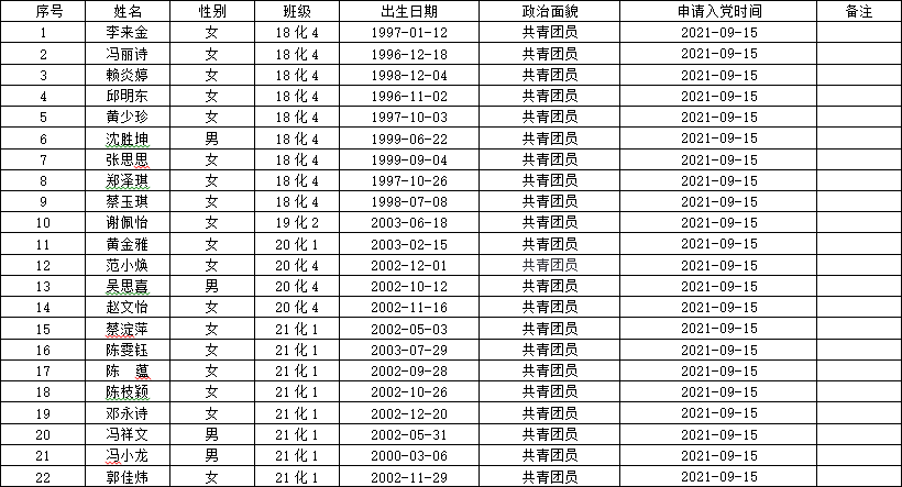 根据《中国共产党发展党员工作细则》规定,现有化学院18化4班李来金等130名同志按要求向学院党组织自愿递交了入党申请书。现将其有关情况予以公示,征求党员、群众意见。