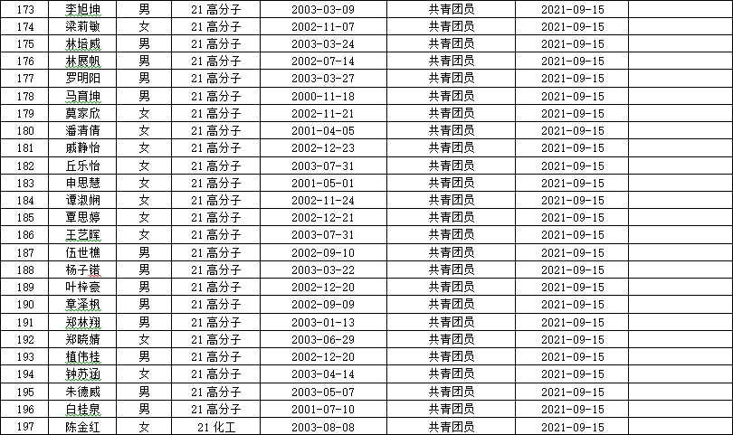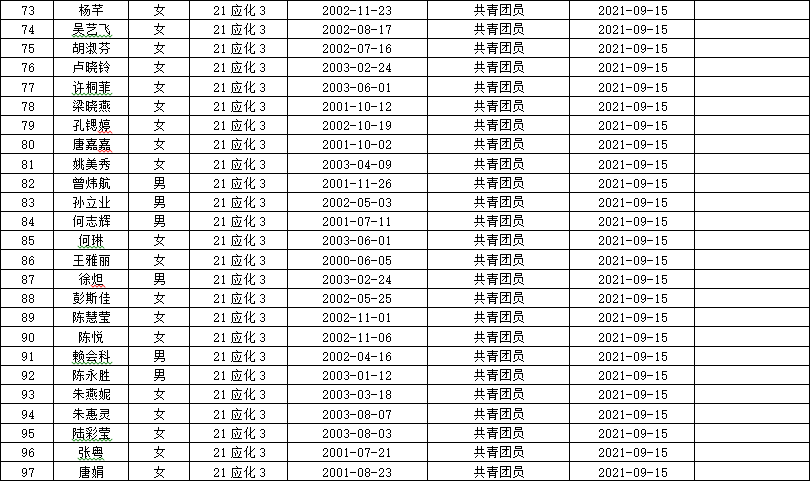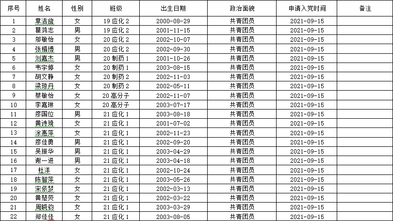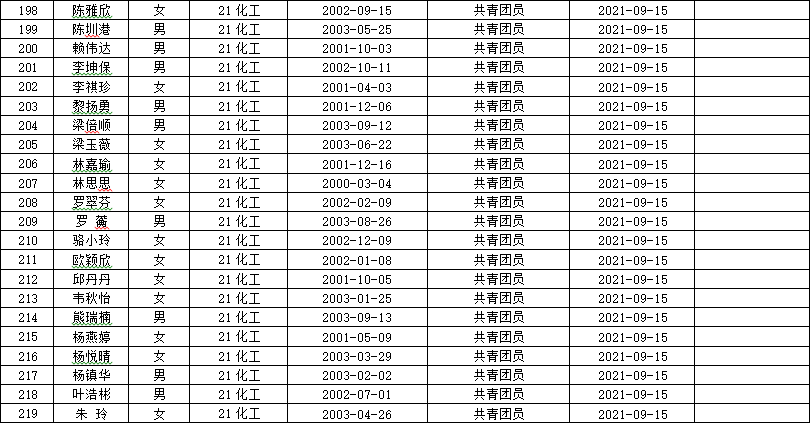 根据《中国共产党发展党员工作细则》规定,现有化学院19应化2班章洁旋等219名同志按要求向学院党组织自愿递交了入党申请书。现将其有关情况予以公示,征求党员、群众意见。
