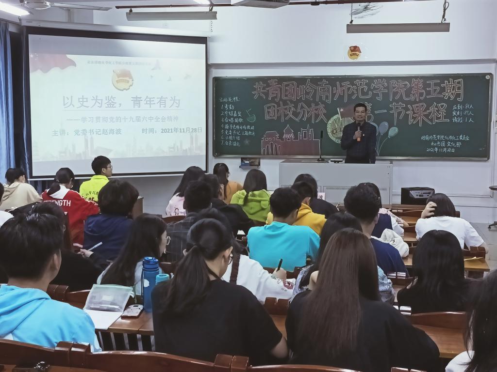 11月28日,化学化工学院团委于教四401举办共青团岭南师范学院委员会业余团校化学化工学院分校第五期团校培训。学院党委书记赵海波、学院团委指导老师陈海娇以及青年学生骨干代表出席此次培训。