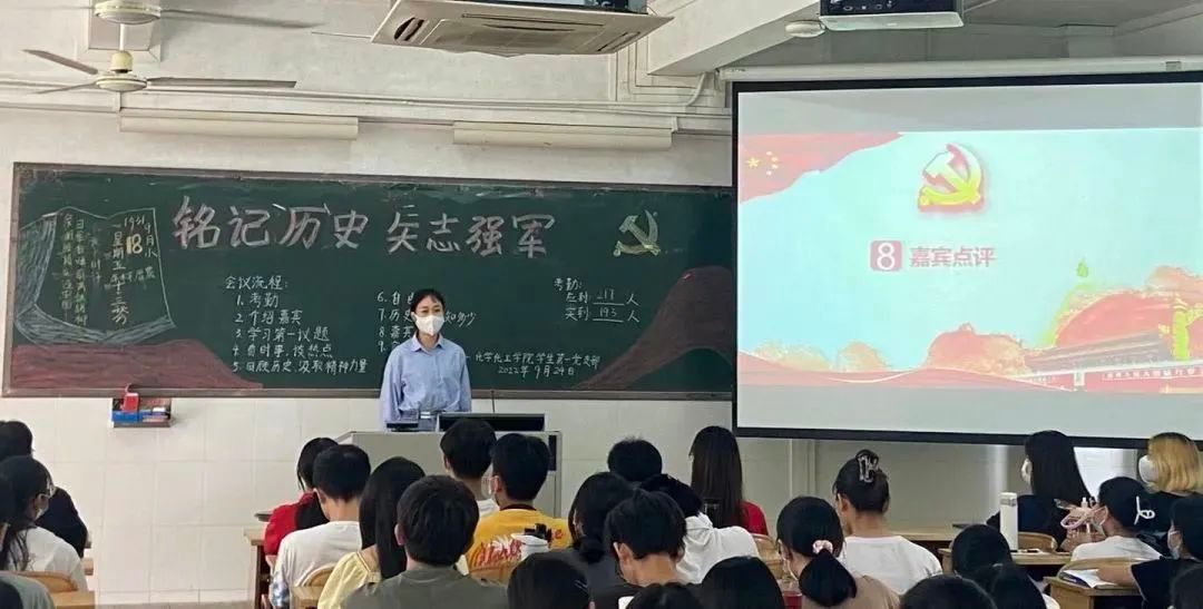 近日,化学化工学院学生第一党支部举行“铭记历史,矢志强军”组织生活会,学院辅导员杨肖慧、黄炽慷与第一党支部全体成员参加。