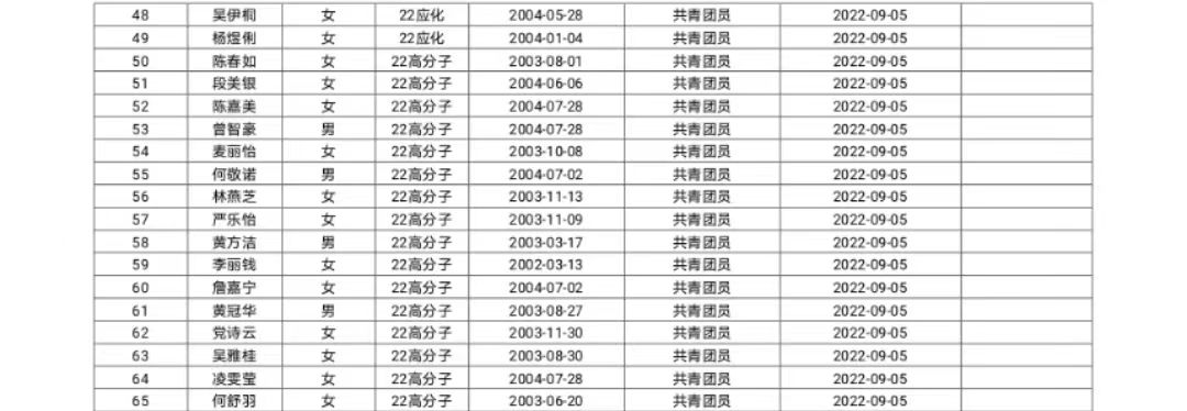 根据《中国共产党发展党员工作细则》规定,现有化学化工学院22化工班倪惠珍等65名同志按要求向学院党组织自愿递交了入党申请书。现将其有关情况予以公示,征求党员、群众意见。