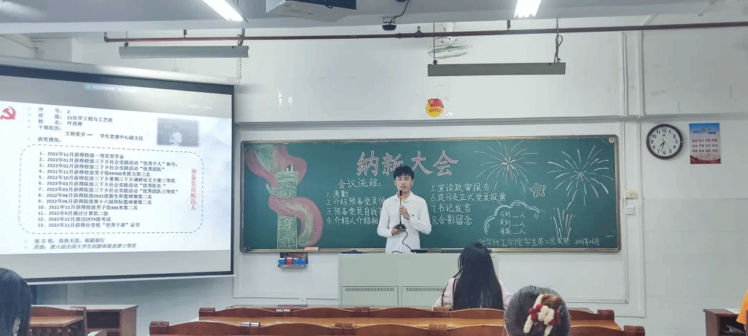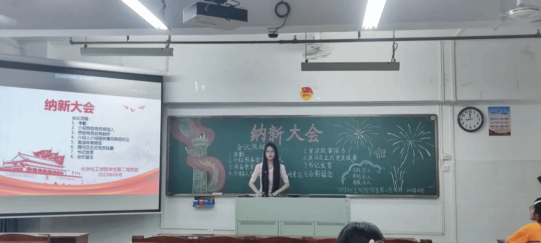2023年06月03日晚,化学化工学院学生第二党支部在燕雷楼D-401召开预备党员发展大会,为党员干部注入新鲜血液。本次会议讨论张雅婷等24名发展对象发展为中共预备党员。出席会议的嘉宾有学院辅导员梁婉莹,会议由化学化工学院学生第二党支部廖方方同志主持。
