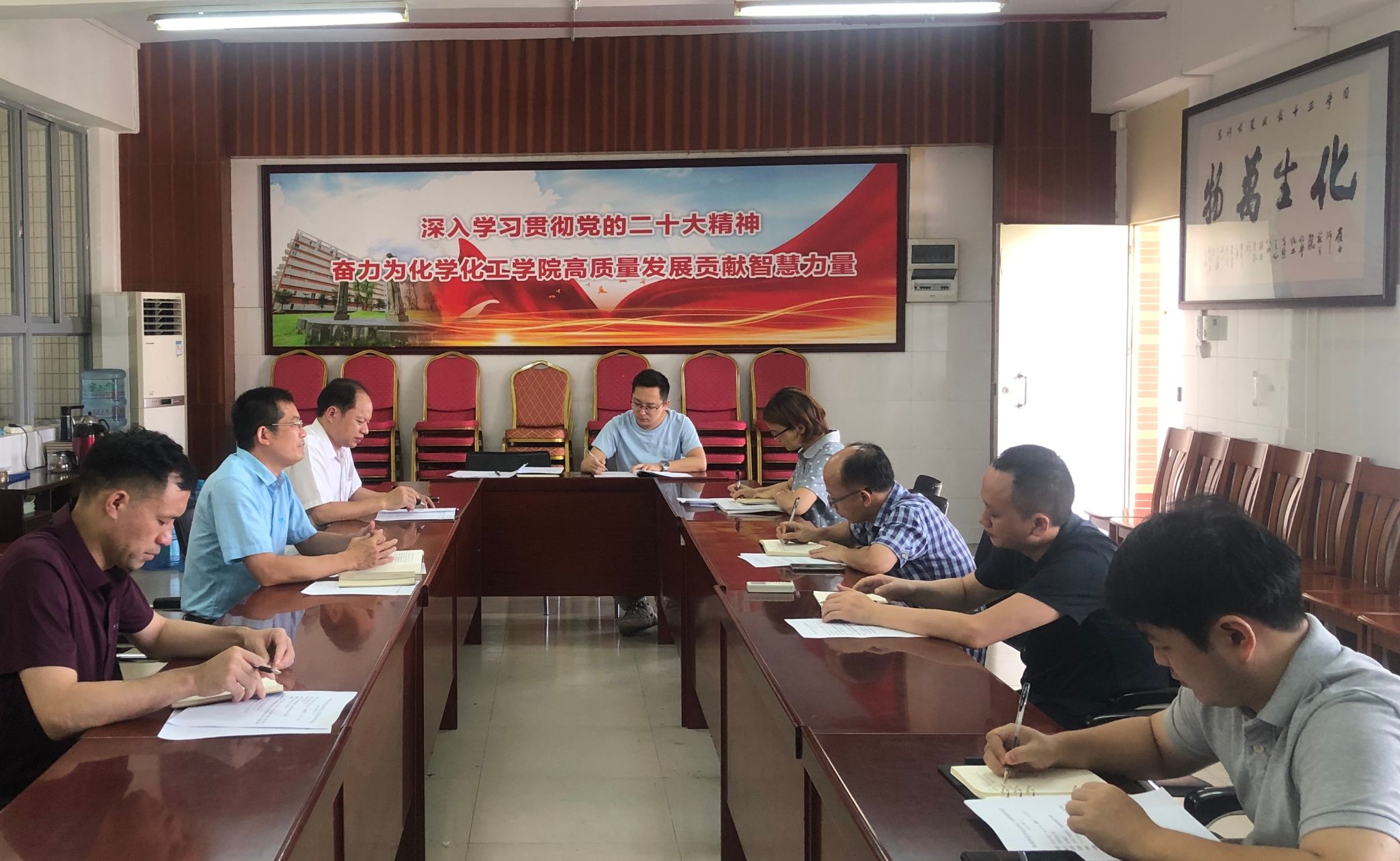 近日,化学化工学院党委理论学习中心组举行今年第四次集中学习会,专题学习《习近平著作选读(第二卷)》重要篇目《培养德智体美劳全面发展的社会主义建设者和接班人》。学院党委书记赵海波主持会议并作领学,学院其他领导班子成员、党委委员等作了交流发言,办公室主任、组织员等列席。