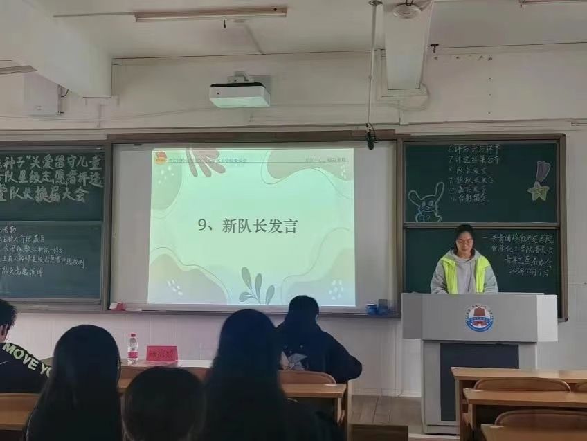 接下来,“阳光种子”关爱留守儿童服务队新任队长卢小川上台发言,表达了对未来的期望。相信在新任队长的带领下,“阳光种子”关爱留守儿童服务队将会为服务对象提供更优质的服务。