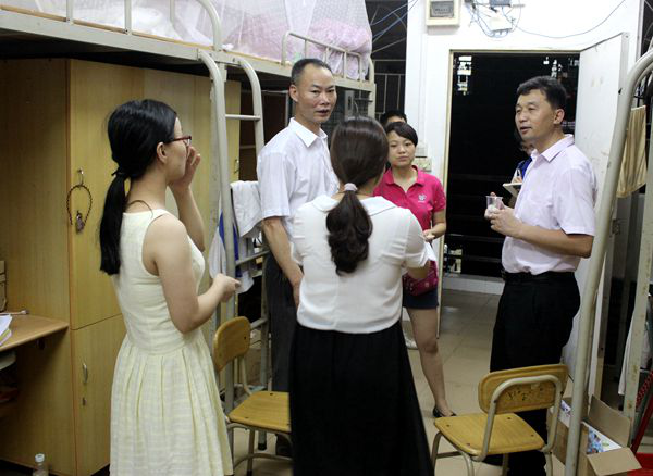 尽管天气炎热,领导、老师仍坚持走访毕业生宿舍,每到一间宿舍,毕业生都热情迎接。同学们如实反应毕业前的有关情况,感谢学院对他们的尊重与真挚的关怀,感谢学院四年来对他们的栽培。