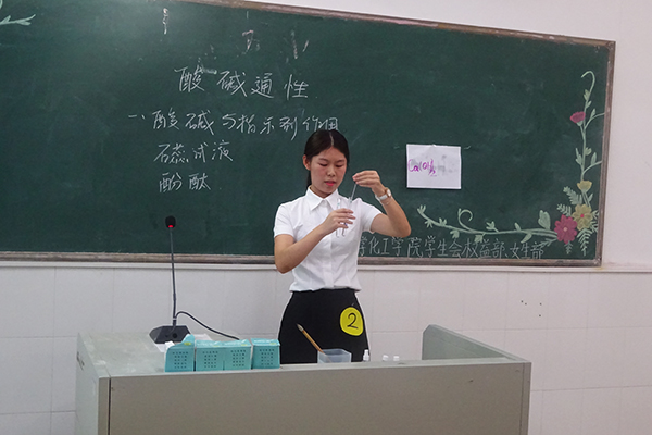 为加强培养学生的实际教学技能,展示化学化工学院学生的教学风采,11月19日晚,化学化工学院权益部和女生部在燕雷楼C栋711室、713室联合举行第四届教学技能大赛初赛。化学化工学院学生会副主席蓝彩娟、权益部前部长张广丽作为嘉宾出席本次比赛,有实习教学经验的严珍珠、张凤娟、周锦慧等作为评委。