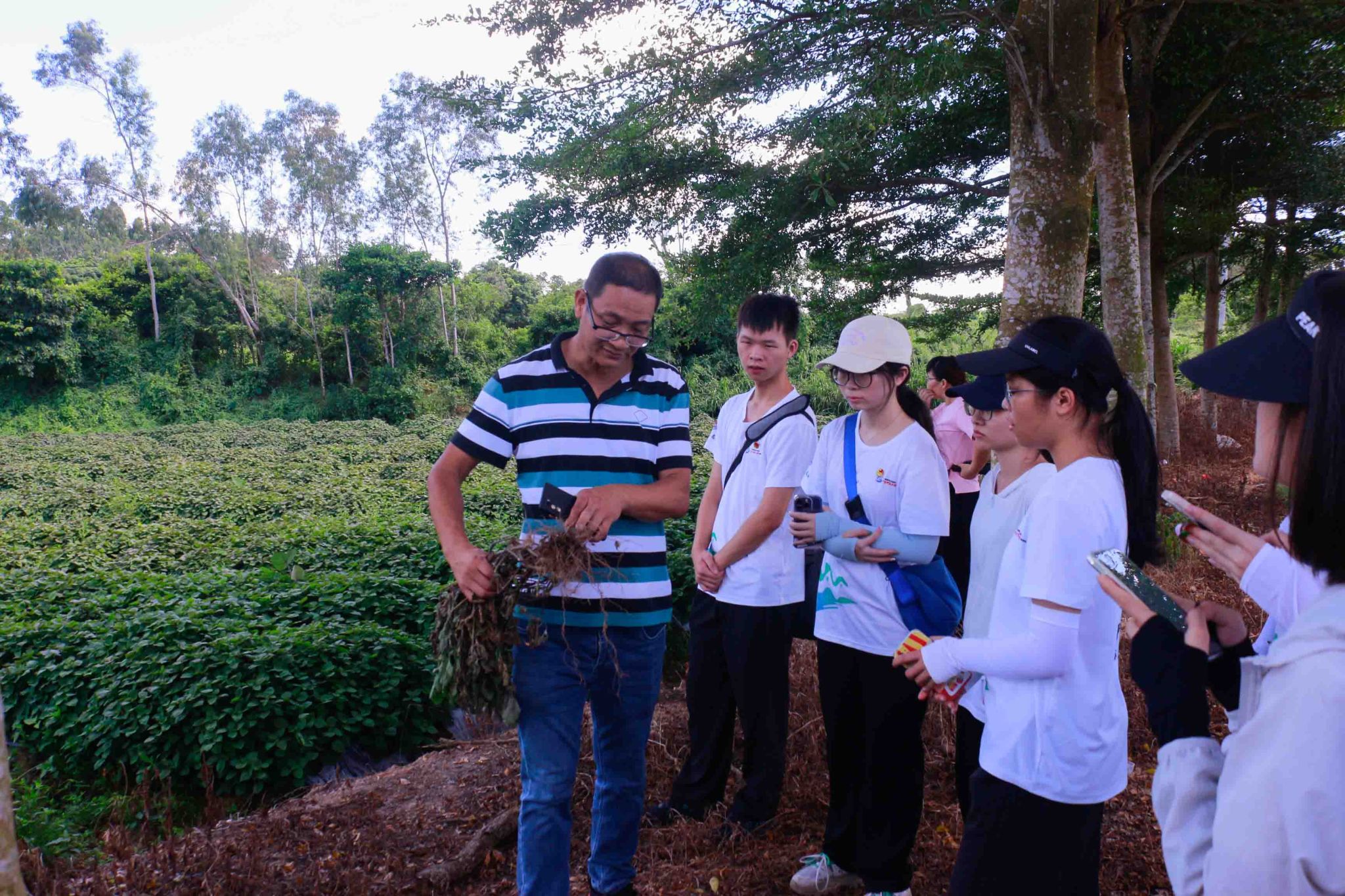 7月7日上午,覃社村委会书记李贵兴率“岭南生态液”突击队赴种植基地进行实地调研,与农民亲切沟通交流,助力广藿香、三叉苦产业发展,扎实推进岭南师范学院大学生百千万工程走深走实。