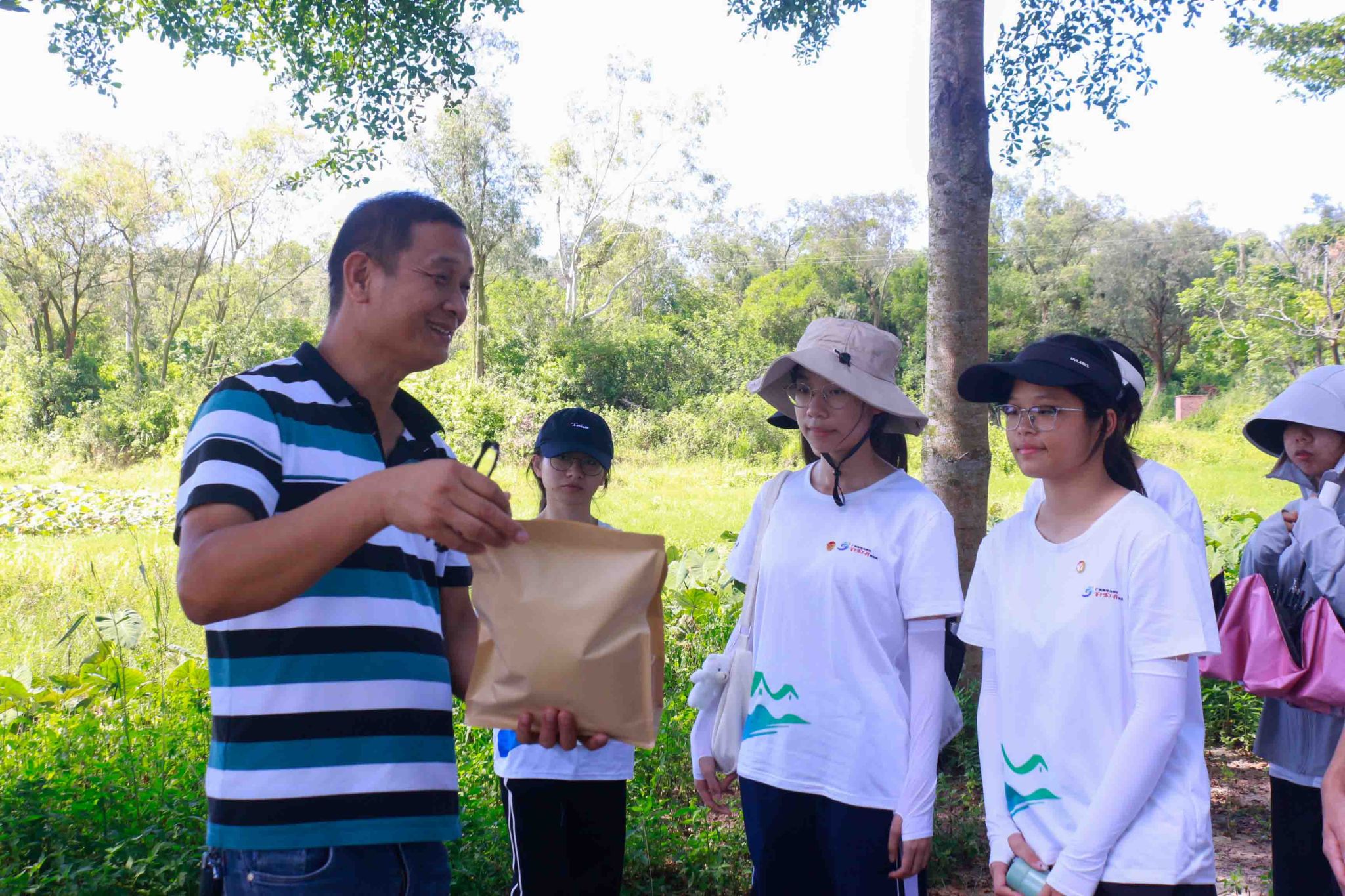 队伍首先赴广藿香种植基地调研。李贵兴简要介绍了种植条件、灌溉水源、种植周期、农产品生产等基本情况,以供“岭南生态液”突击队掌握基本情况,有针对性的、高效的提高广藿香的产量。李贵兴留出时间供突击队队员询问问题,耐心细致地回答,使突击队队伍对广藿香的种植有了更深入的了解。李贵兴认为,需要积极引导其他村民种植广藿香,以点带面,推动整个村庄的农业发展。针对土地荒废情况,他鼓励农民提高土地利用率,实现土地高效化。为此,政府提供大力支持;“岭南生态液”突击队来访小良镇,愿意同覃社村成长,成为覃社村建设者,把本课题工作做深、做实,贡献一份力量。