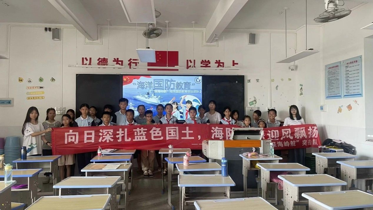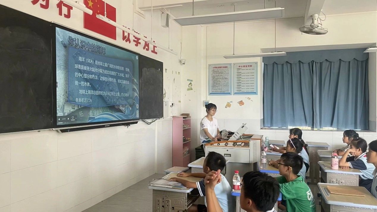 向日葵社会实践队带着对乡村的深厚情谊,带给同学们丰富的知识。队员们结合图片中的海洋知识,用通俗易懂的语言讲解了我国海洋的广阔与美丽,激发了同学们对未知世界的好奇心和探索欲。 同时,队员们还深入浅出地讲解了海洋国防安全的重要性,有效激发了同学们的爱国热情,并让他们深刻感受到知识的力量。