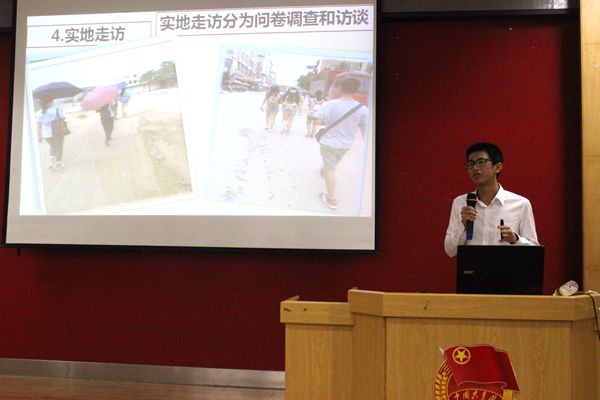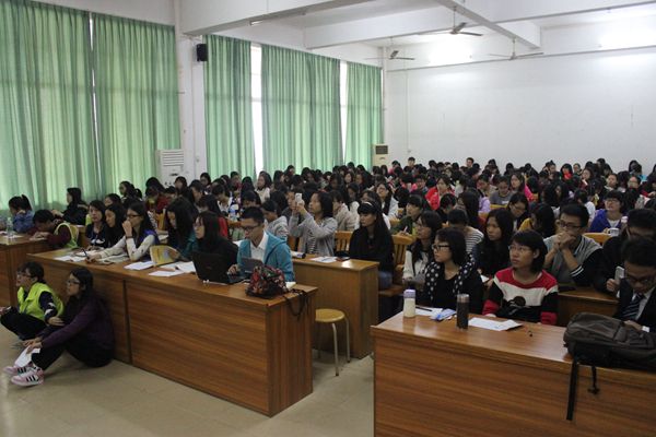 此次报告会吸引众多同学前来听讲,会议现场座无虚席。曾庆清与其团队成员团结合作,对高州水库经济发展中存在的问题和如何合理协调生态与经济进行访谈调查。他们采用走访村民进行调查的方式获得数据,据此显示,当地大部分村民不了解生态经济,对水库周围环境的保护意识薄弱。