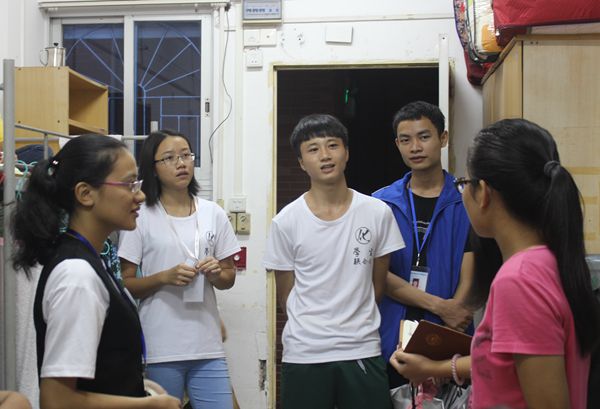 各位学生干部按事前分配,分成10个小组,分别对尚志、尚雅、弘志、博雅苑进行走访。在走访过程中,干部们首先了解台风过后同学们的具体情况,并及时给新生普及湛江气候等方面的知识,希望他们下次再遇到同样的危急情况要学会自保。针对新生提出的关于宿舍水电、饭堂伙食等多方面的问题,干部都有认真做好记录,并表示会积极向上一级反映该情况,尽最大的努力帮助他们解决问题,给予他们一个更舒适的生活环境。对于学习方面,干部们以过来人的身份给师弟师妹们传授了有关学习的技巧,让他们明白学校不只是是学习的地方,还是一个让你努力实现梦想的平台。