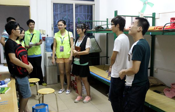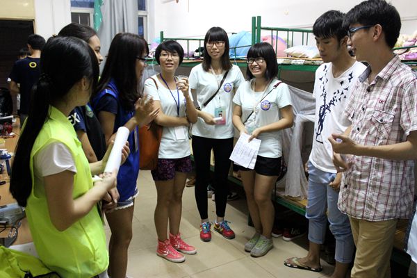 各位学生干部按事前分配,编成7个小组,由相应的学生会成员带队,出发前往尚雅苑及弘志苑。走访新生宿舍过程中,学生干部针对新生入校易出现的生活、学习上的状况进行了分析,鼓励他们在岭南师范学院这一新的里程碑上开创一片新天地,并对新生有关大学生专业、就业等方面的问题进行解答。同时学生干部就化学院四大机构的职责及部门等向各位新生进行了介绍,希望各位新生积极面试,争取做学院干部,充实自己的大学生活。