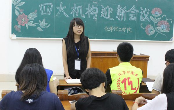 化学化工学院的四大机构已做好准备迎接14级的新生到来,我相信我们的团结一心,必定会传承我们学院的优良传统——相亲相爱一家人。